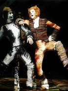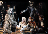 Anecdotal history from several actors suggests that the producer attempted to cut costs by having as few swings as possible, initially allowing for no more than four before being persuaded that the show could not be performed with fewer than twelve swings. (By comparison, in Hamburg the swings had usually outnumbered the main cast.) This led to some performers being hired and billed only as dressers, although they often doubled as booth singers and in many cases covered roles in performance, though their billing (and pay) didn't necessarily reflect this. Notably, Stephanie Watt was hired as a dresser, billed as a booth singer, covered Jennyanydots and Grizabella, and took over the latter role when Charlotte Vigel left the show - eventually playing the role more often than Charlotte - but was never credited for it.