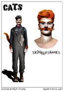 This production makes a great departure from the norm in terms of designs, as all characters are portrayed fully clothed, and far more human than feline in appearance. Characters are based on all walks of life, from evacuating children to glamour girls; spivs to Airmen, Milkmen, and Civil Defence Scouts. Coricopat and Tantomile are portrayed here as children.
