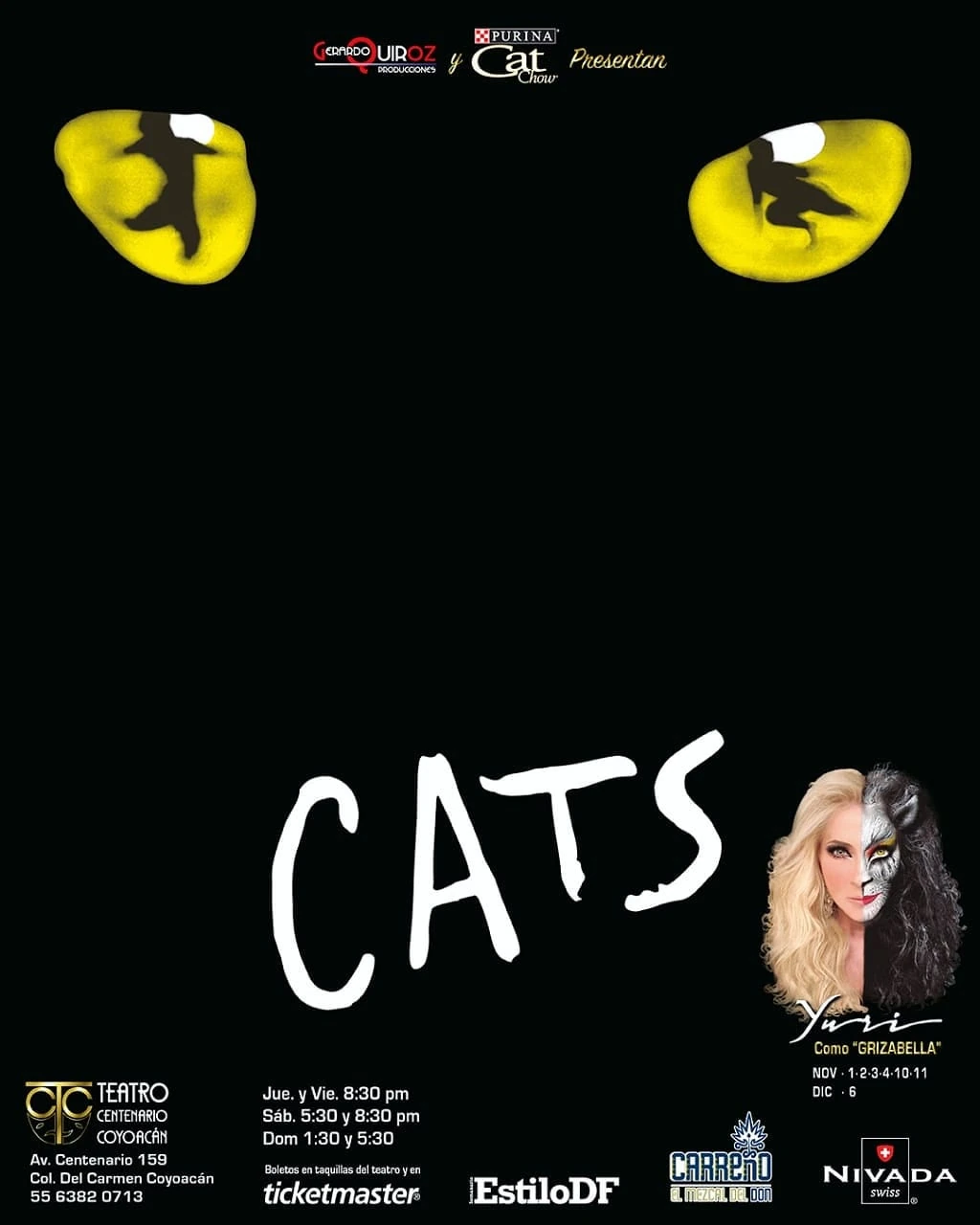 | Grizabella | Yuri / Natalia Sosa / Ana Cirré / Rocío Banquells (from 12/2018) | Yuri / Rocío Banquells / Natalia Sosa | Yuri / Rocío Banquells / Natalia Sosa / Karen Espriu | |